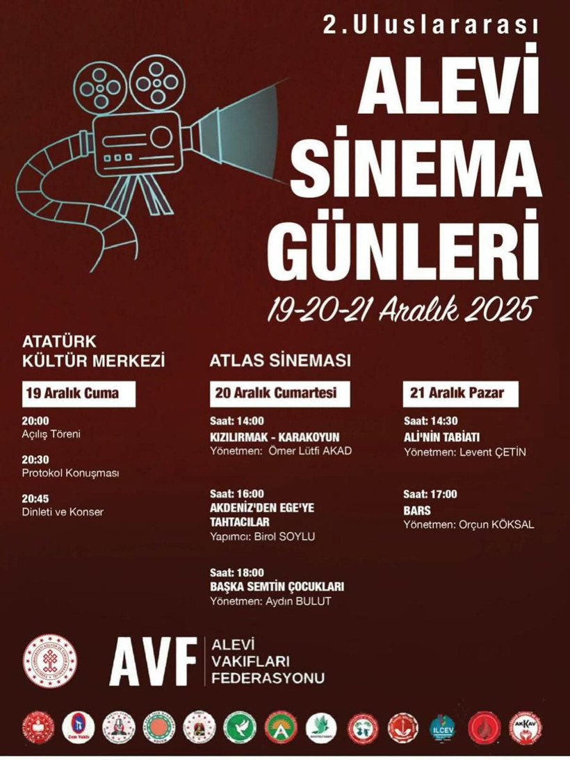 Alevi Vakıfları Federasyonu (AVF) tarafından düzenlenen 2. Uluslararası Alevi Sinema Günleri, 19-20-21 Aralık 2025 tarihlerinde İstanbul’da sinemaseverlerle buluşacak. Etkinliğin açılışı, 19 Aralık Cuma günü saat 20.00’de Taksim Atatürk Kültür Merkezi’nde (AKM) yapılacak. Açılış töreninin ardından saat 20.30’da protokol konuşmaları, 20.45’te ise dinleti ve müzik programı gerçekleştirilecek.